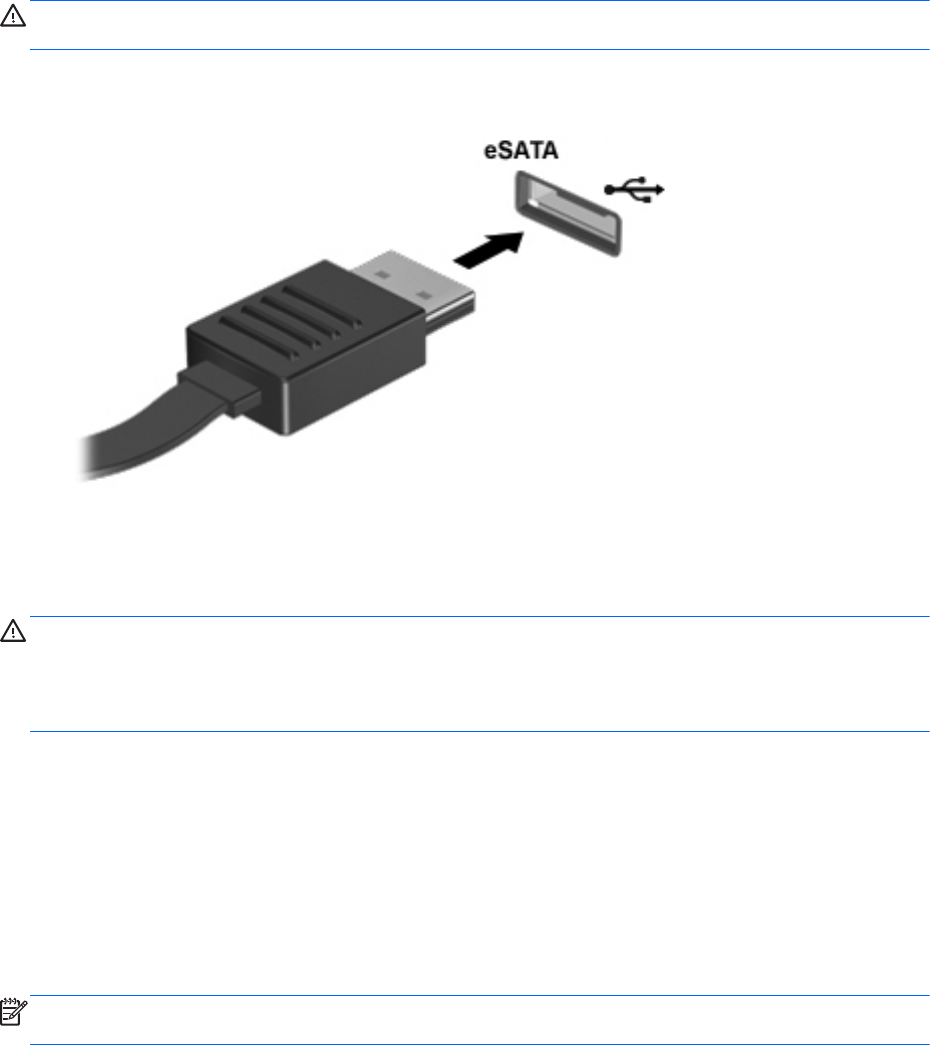 FORSIKTIG: For å redusere risikoen for skade på en eSATA-kontakt må du ikke trekke i kabelen
