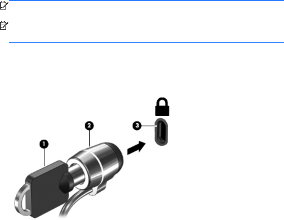 3. Sett kabellåsen i sporet for tyverisikringskabelen (3) på datamaskinen, og lås deretter