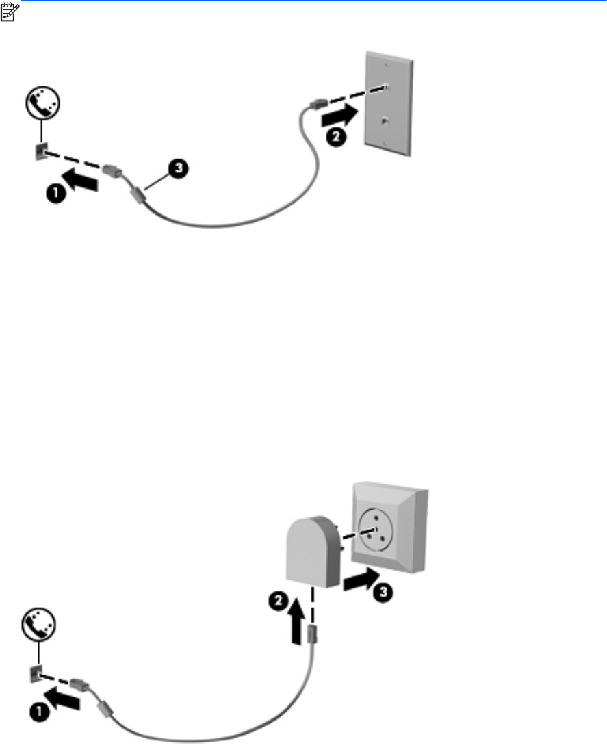 Telefonske se utičnice razlikuju ovisno o državi ili regiji. Da biste modem ili modemski kabel