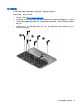 1. 翻转笔记本计算机,将其底部朝上放在平整的表面上,并使电池托架朝向您。