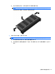 2. 滑动电池释放锁定器 (1) 以松开电池。