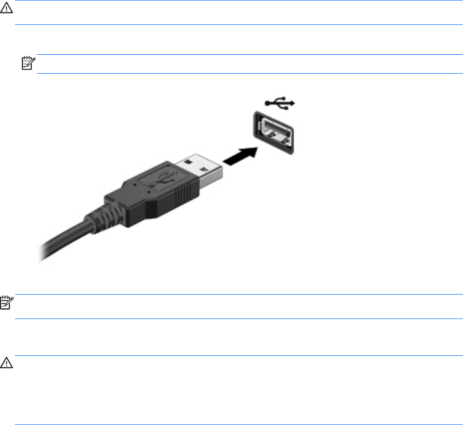 ΠΡΟΣΟΧΗ Για να μειώσετε τον κίνδυνο πρόκλησης βλάβης σε μια υποδοχή USB, μην τραβάτε το