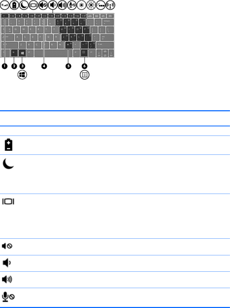 I tasti di scelta rapida sono combinazioni del tasto fn (1) con il tasto esc (2) o uno dei tasti funzione