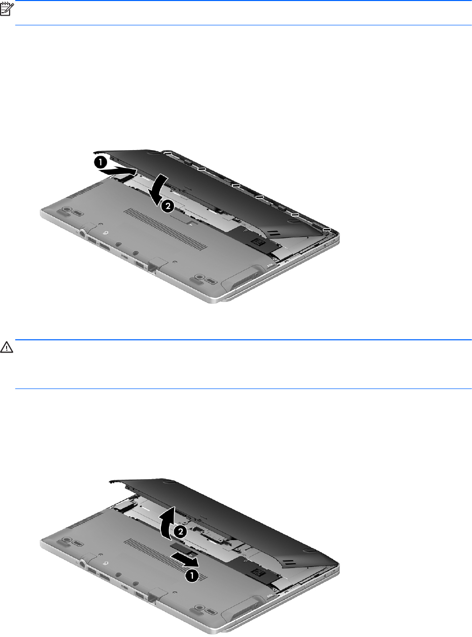 3. Приподнимите батарею и извлеките ее из компьютера (2).