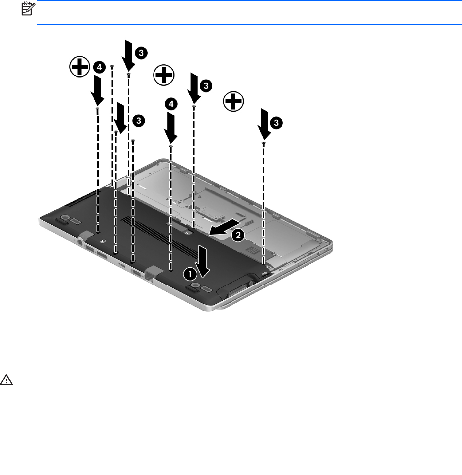 завинтите 2 винта, расположенных в центральной части сервисной крышки (4).