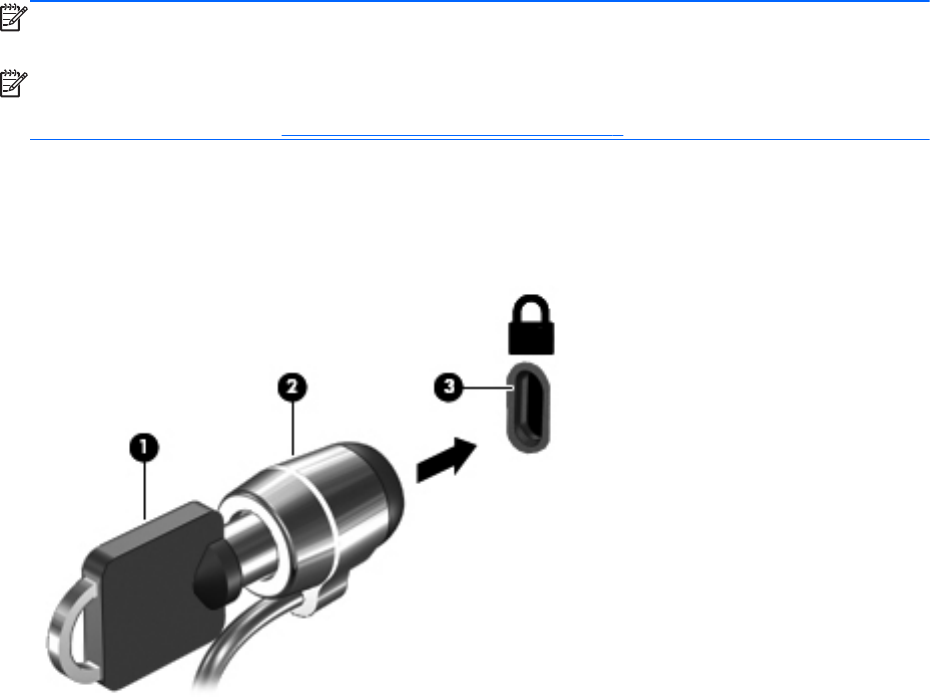 3. Вставьте замок с тросиком в гнездо (3) на компьютере и закройте замок ключом.