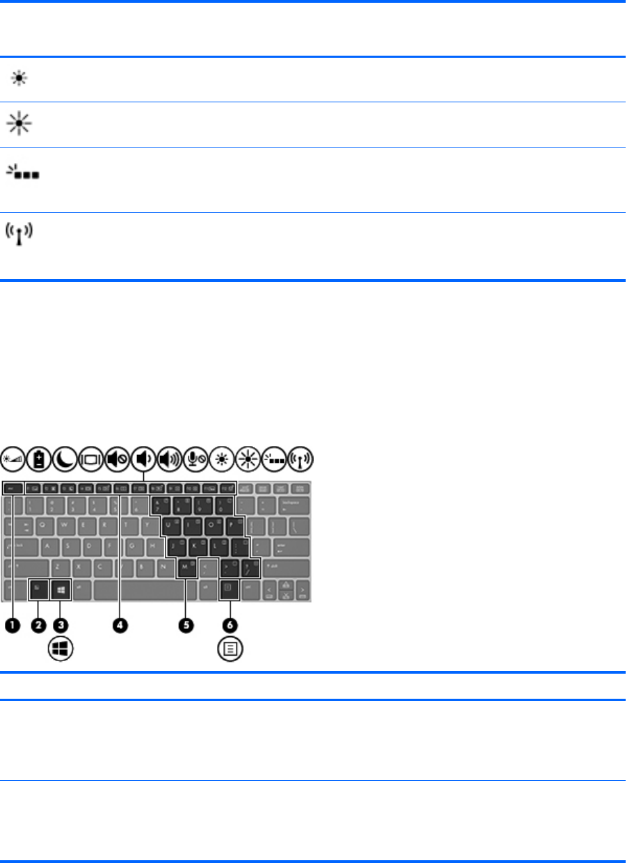 (2) tecla fn Activa y desactiva el teclado numérico incorporado al presionarla
