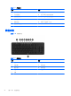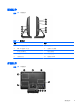 表格 1-3 背面組件 組件 組件 1 磁碟機維修面板 7 安全鎖插槽 2 中央維修面板 8 附有 LED 指示燈的電源接頭 3 記憶體維修面板 9 RJ-45 Gigabit 乙太網路連接埠 4 光碟機位置 10 立體聲音訊音源輸出 5 硬碟機位置 11 USB 2.