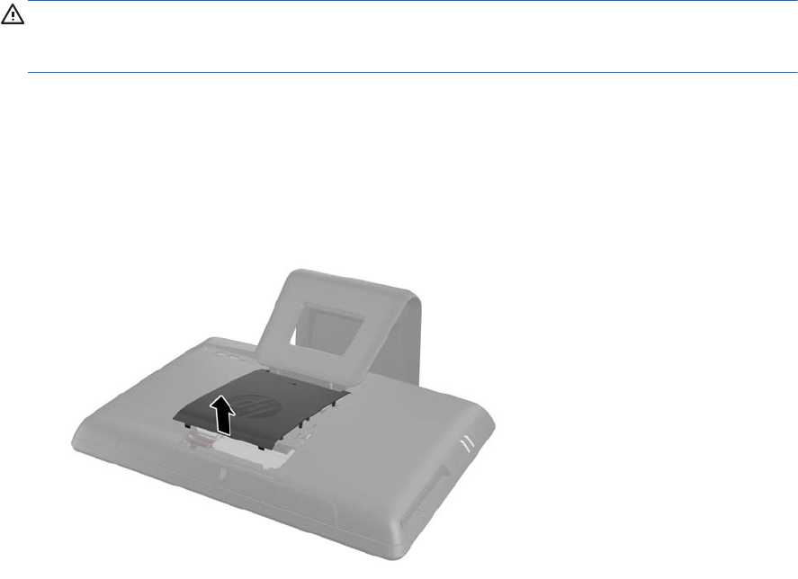 5. 將電腦面朝下放置在柔軟、平坦的表面。若要保護螢幕面板避免刮傷或其他損壞,HP 建議您在電
