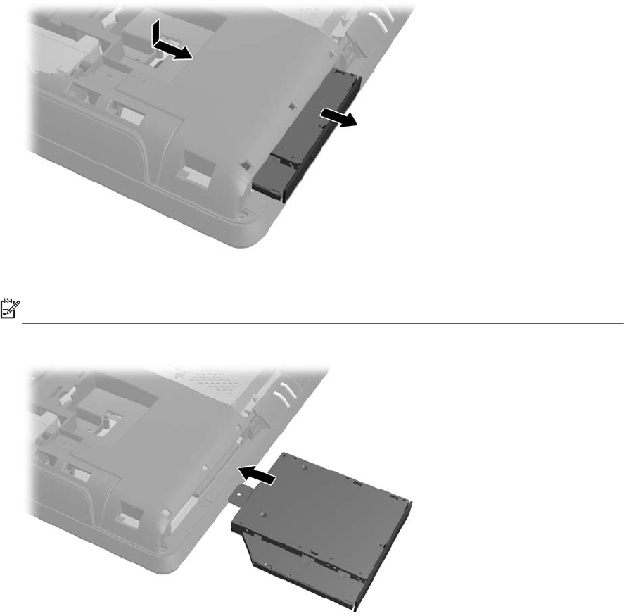 將光碟機稍微從電腦推出。抓住磁碟機前端,