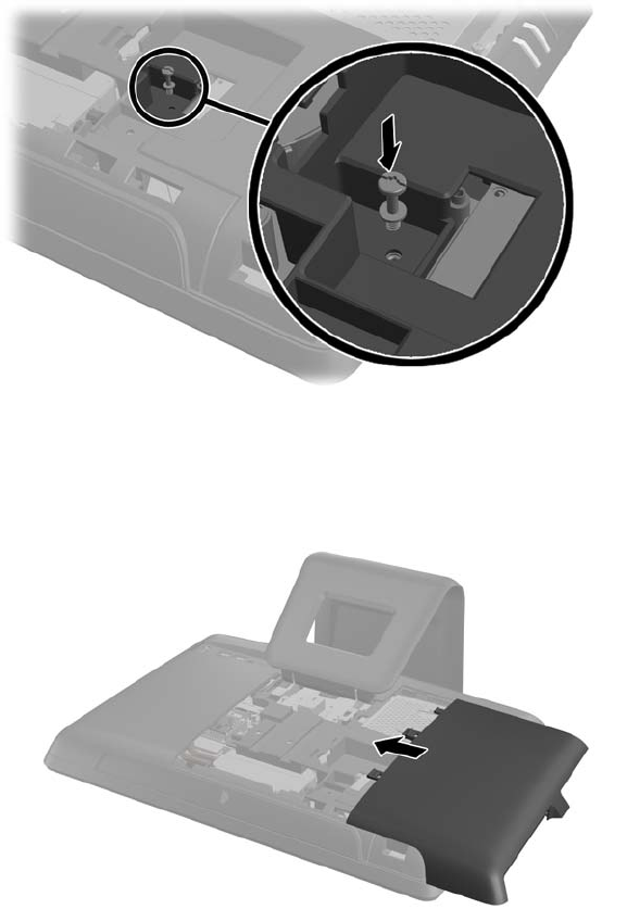 將磁碟機維修面板置於電腦背面,