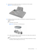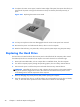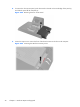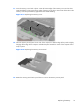 8. To remove the drive access panel, push downward on the tab on the inside edge of the panel (1)