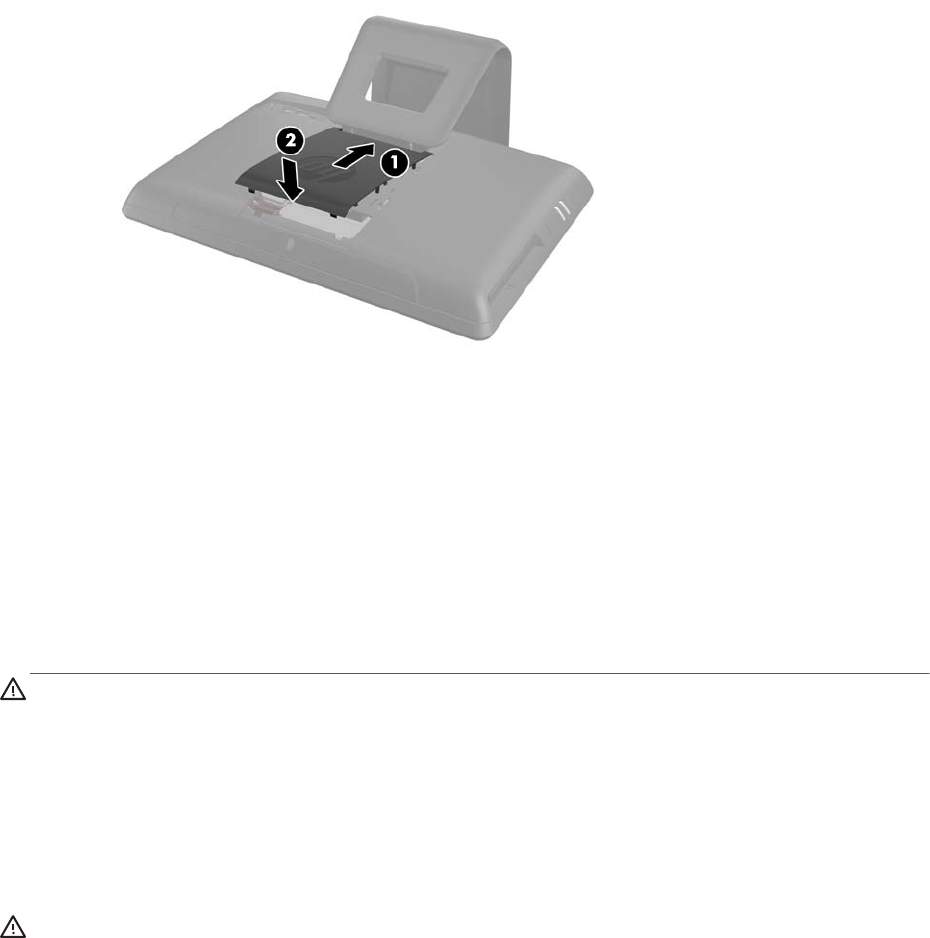 에서 위쪽 방향으로 단단히 눌러서 패널이 찰칵 소리를 내며 제자리에 고정되도록 합니다.