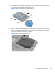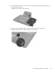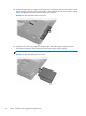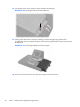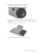 8. Untuk melepaskan panel akses drive, tekan ke bawah tab pada tepi bagian dalam panel (1), lalu