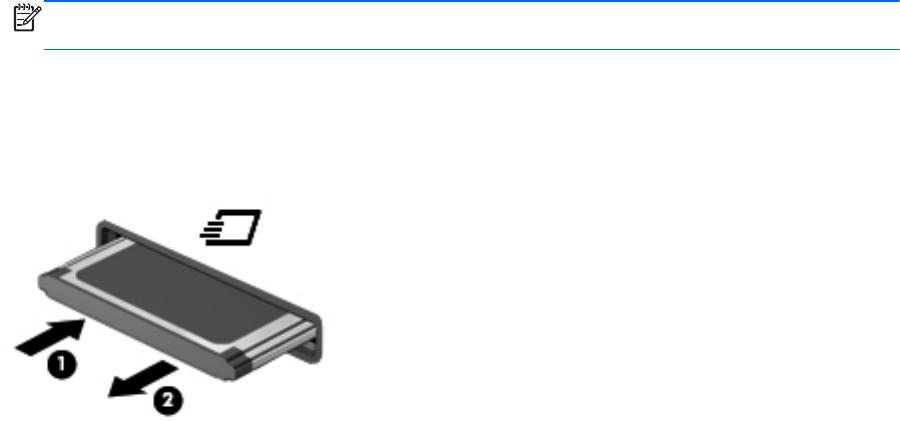 b. Vytáhněte kartu ExpressCard ze zásuvky (2).