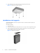 2 Modifiche all'hardware Sequenza generale di installazione hardware Per garantire un'installazione adeguata dei componenti hardware thin client: 1. Eseguire il backup dei dati, se necessario. 2. Se il thin client è acceso: a. Spegnere l'unità e qualsiasi altra periferica collegata. b. Scollegare il cavo di alimentazione dalla presa elettrica. c. Disconnettere i dispositivi o i cavi esterni, come una chiusura cavo.