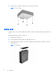 ● 22페이지의내장 하드 드라이브 다시 부착 ● 25페이지의 PCI-Express 카드 설치 참고: 옵션 키트에는 자세한 설치 지침이 포함되어 있습니다. 7. 측면 액세스 패널 및 금속 측면 덮개를 다시 부착합니다. 자세한 내용은 12페이지의측면 액세 스 패널 및 금속 측면 덮개 분리 및 부착을 참조하십시오. 8. 씬 클라이언트를 수직 방향으로 장착하지 않고 사용할 경우 받침대를 설치하십시오. 자세한 내 용은 4페이지의받침대 설치을 참조하십시오. 9. 외부 장치 및 전원 코드를 다시 연결합니다. 10. 모니터, 씬 클라이언트 및 테스트하려는 장치를 켭니다. 11. 필요한 드라이버를 로드합니다. 참고: HP http://www.hp.com/country/us/eng/support.html 에서 선택한 하드웨어 드라이브를 다운로드할 수 있습니다. 12. 필요한 경우 씬 클라이언트를 다시 구성합니다.