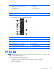 A 제품 사양 표 A-1 HP t610 씬 클라이언트 규격 너비(앞뒤) 220mm 8.66 인치 높이(받침대 없이 위아래) 240mm 9.45 인치 깊이(좌우로) 40mm 1.57 인치 대략적인 무게 1.53kg 온도 범위(팬 없는 디자인)* 작동 시** 10°~40°C (최대 변화율은 시간당 10°C 또는 입니다.) 비작동 -30°~60°C (최대 변화율은 시간당 20°C 또는 입니다.) *적정 범위는 직사광선이 비추지 않는다는 조건 하에 고도 300m 당 1°C 씩 최대 3km 까지 감소합니다. 최대 제한은 설치된 옵션의 유형 및 수에 의해 결정됩니다. ** HP Quick Release 를 사용하여 평면 패널에 씬 클라 이언트가 연결되어 있을 때의 작동 온도 범위는 10°C~35°C 입니다. 상대 습도(비응축) 작동 시 10~90% (최대 습구 온도는 28°C 또는 입니다.) 비작동 5~95% (최대 습구 온도는 38.7°C 또는 입니다.