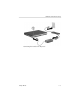 Index optical disk drive 3–7, 3–8 power/Standby 1–8, 3–5, 3–6, 3–15, 3–17 wireless on/off 3–27 M Q Quick Launch buttons, function 3–11 R num lock light 3–7, 3–8 regional settings 1–9 regulatory information notices 1–13 Regulatory and Safety Notices 2–2 release latch 1–6, 1–7 right-side components 3–25, 3–27 RJ-11 telephone jack 3–19, 3–20 RJ-45 network jack 3–26, 3–28 O S Maintenance, Shipping and Travel guide 2–1 memory compartment location 3–29, 3–30 microphone jack 3–25, 3–27 Modem and Networkin