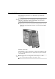 Mises à niveau matérielles Pour installer une unité de disque, procédez de façon inverse. installez une unité de 5,25 pouces pour la première fois ✎ Sidansvousle compartiment 2, vous devez commencer par retirer l’unité du compartiment 1 pour pouvoir ôter l’obturateur métallique situé à l’avant du compartiment 2 en le brisant. AVERTISSEMENT : une fois cet obturateur enlevé, il se peut que l’ouverture du compartiment présente des arêtes coupantes du côté intérieur. Retrait d’une unité de disquette 1.