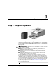 1 Installatieoverzicht Stap 1: Computer uitpakken Tests hebben uitgewezen dat deze apparatuur voldoet aan de limieten die worden gesteld aan digitale apparaten uit Klasse B, conform deel 15 van de FCC-richtlijnen. Meer informatie vindt u in de documentatie bij het product. WAARSCHUWING: U beperkt het risico van elektrische schokken of schade aan de apparatuur als volgt: ■ Gebruik altijd een geaarde netsnoerstekker. De geaarde stekker is een belangrijke veiligheidsvoorziening.