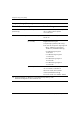 Computer Setup (F10) Utility Computer Setup (Fortsetzung) Überschrift Option Beschreibung Password Option (Fortsetzung) Password Check Ermöglicht die Aktivierung einer Kennwortprüfung, wenn das Supervisor-Kennwort eingerichtet ist. • Setup: Bei der Ausführung des BIOS wird die Eingabe eines Kennworts angefordert. • Always: Das Kennwort wird bei jedem Start des Computers geprüft (Standardeinstellung). Load Default Settings None Lädt die optimalen Standardwerte für alle Optionen im Setup.