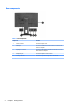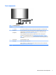 Rear components Table 1-2 Rear components 4 Component Function 1 Power connector Connects the power cord. 2 HDMI port Connects an HDMI cable from the monitor to a source device such as a computer. 3 DisplayPort connector Connects the DisplayPort cable from the monitor to a source device such as a computer. 4 Headphone jack Connects headphones to the monitor. 5 Security cable slot Connects an optional security cable to the monitor.