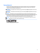 Menghubungkan kabel CATATAN: Monitor dikirim dengan kabel yang sesuai. Tidak semua kabel yang ditampilkan di bagian ini disertakan bersama monitor. 8 1. Letakkan monitor di tempat yang aman dan bersirkulasi udara baik di dekat komputer. 2. Untuk menyediakan sinyal video ke monitor, sambungkan kabel video HDMI atau DisplayPort antara monitor dan perangkat sumber (komputer). ● Hubungkan satu ujung kabel HDMI ke port HDMI di bagian belakang monitor dan ujung lainnya ke port HDMI pada perangkat sumber.