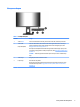 Komponen depan Tabel 1-1 Komponen depan Kontrol Fungsi 1 Tombol Menu Tekan untuk membuka menu OSD, pilih item menu dari OSD, atau tutup menu OSD. 2 Tombol OSD Jika menu OSD terbuka, tekan tombol untuk menavigasi melalui menu. Ikon lampu fungsi menunjukkan fungsi tombol default. Untuk uraian tentang fungsi ini, lihat Menggunakan tombol fungsi pada hal. 15. (dapat ditetapkan) Anda dapat menetapkan kembali tombol fungsi untuk memilih dengan cepat operasi yang paling sering digunakan.