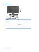 Aizmugurējie komponenti 1-2. tabula. Aizmugurējie komponenti 4 Komponents Funkcija 1 Strāvas savienotājs Ļauj pievienot strāvas vadu. 2 HDMI ports Ļauj ar HDMI kabeli savienot monitoru un avota ierīci, piemēram, datoru. 3 DisplayPort savienotājs Ļauj ar DisplayPort kabeli savienot monitoru un avota ierīci, piemēram, datoru. 4 Austiņu ligzda Savieno austiņas ar monitoru. 5 Drošības kabeļa slots Ļauj pievienot monitoram papildu drošības kabeli. 1. nodaļa.