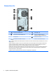 Sistemas Non-vPro 1 Conector de entrada de áudio 5 Portas USB 3.x (2) 2 Conectores do monitor DisplayPort (2) 6 Conector de saída de áudio para dispositivos de áudio com alimentação 3 Porta opcional 7 Conector RJ-45 (rede) 4 Portas USB 2.0 com Wake do S4/S5 (4) 8 Conector de cabo de alimentação NOTA: Se estiver utilizando um teclado USB, a HP recomenda a conexão do teclado a uma das portas USB 2.0 com o recurso Wake do S4/S5.