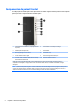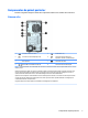 Componentes do painel frontal A configuração da unidade pode variar dependendo do modelo. Alguns modelos possuem uma tampa de painel que cobre o compartimento de unidade óptica. 1 Compartimento da unidade de 5,25 polegadas (atrás do painel) 6 Porta USB 2.0 com HP Sleep and Charge* 2 Unidade óptica fina (opcional) 7 Porta USB 2.0 3 Botão Liga/Desliga de dois estados 8 Portas USB 3.