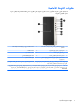 مكونات اللوحة الأمامية قد يختلف تكوين محركات الأقراص حسب الطراز .تحتوي بعض الطرازات على غطاء فتحة فارغة يغطي حجرة محرك الأقراص الضوئية. ١ حجرة محرك الأقراص مقاس ٥٫٢٥بوصات (خلف غطاء الفتحة) ٦ منفذ USB 2.0مرفق مع *HP Sleep and Charge ٢ محرك أقراص بصرية رفيع (اختياري) ٧ منفذ USB 2.0 ٣ زر التشغيل ثنائي الحالة ٨ منافذ )٢( USB 3.