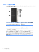 シリアル番号の記載位置 各コンピューターの外側には、固有のシリアル番号ラベルおよび製品識別番号ラベルが貼付されてい ます。HP のサポート窓口にお問い合わせになる場合は、これらの番号をお手元に用意しておいてくだ さい。 シリアル番号の記載位置 5