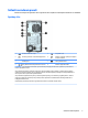 Súčasti na prednom paneli Konfigurácia jednotky sa môže pri jednotlivých modeloch líšiť. Niektoré modely majú prázdny článok krytu, ktorý zakrýva pozíciu pre optickú jednotku. 1 Pozícia na 5,25-palcovú jednotku (za panelom) 6 Port USB 2.0 s funkciou režimu spánku a nabíjania od HP* 2 Tenká optická jednotka (voliteľné) 7 Port USB 2.0 3 Dvojpolohové tlačidlo napájania 8 Porty USB 3.