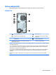 Deli na sprednji plošči Konfiguracija pogonov se lahko razlikuje glede na model računalnika. Nekateri modeli imajo zaščitno ploščo, ki pokriva ležišče optičnega pogona. 1 Ležišče 5,25-palčnega pogona (za ohišjem) 6 Vrata USB 2.0 s funkcijo HP polni med spanjem* 2 Tanek optični pogon (izbirno) 7 Vrata USB 2.0 3 Gumb za napajanje z dvema stanjema 8 Vrata USB 3.