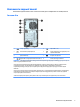 Компоненти передньої панелі Конфігурація привода залежить від моделі. Деякі моделі обладнано заглушкою, що закриває відсік для оптичного привода. 1 Відділення для 5,25-дюймового диска (за панеллю) 6 Порт USB 2.0 із функцією HP Sleep and Charge* 2 Тонкий пристрій для читання оптичних дисків (додатково) 7 Порт USB 2.0 3 Кнопка живлення з двома положеннями 8 Порти USB 3.