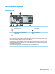 Elementy panelu przedniego Konfiguracja napędów różni się w zależności od modelu. Niektóre modele mają zaślepkę przykrywającą wnękę napędu optycznego typu slim. Elementy panelu przedniego 1 Napęd optyczny typu slim (opcjonalny) 6 Port USB 2.0 z obsługą funkcji HP Sleep and Charge 2 Czytnik kart SD (opcjonalny) 7 Gniazdo wyjściowe audio (słuchawkowe)/wejściowe audio (mikrofonowe) typu combo jack 3 Port USB typu C (ładowanie) 8 Wskaźnik aktywności dysku twardego 4 Porty USB 3.
