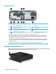 Změna orientace ze stolního počítače na typ tower Počítač typu Small Form Factor lze použít i v poloze na výšku (tower), pokud od společnosti HP zakoupíte volitelný stojan. POZNÁMKA: Společnost HP doporučuje počítač v poloze tower stabilizovat pomocí volitelného podstavce. 1. Sejměte nebo uvolněte jakékoli bezpečnostní prvky, které brání v pohybu počítače. 2. Vyjměte nebo odpojte od počítače všechna vyjímatelná média, např. optické disky nebo jednotky USB Flash. 3.