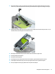 8. Tarik tuas pelepas di sebelah bagian belakang hard drive ke arah luar (1). Saat menarik keluar tuas