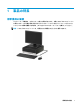 横置きから縦置きへの変更 お使いの省スペース型コンピューターは、HP から購入できるオプションの縦置き用スタンドを利用す れば、縦置き構成でも使用できます。 注記:縦置きでのコンピューターの安定性を高めるために、付属の縦置き用スタンドを使用すること をおすすめします。 1. コンピューターが移動されないように保護しているセキュリティ デバイスをすべて取り外しま す。 2. CD や USB フラッシュ ドライブなどのすべてのリムーバブル メディアをコンピューターから取 り出します。 3. オペレーティング システムを適切な手順でシャットダウンしてコンピューターの電源を切って から、外付けデバイスの電源もすべて切ります。 4.