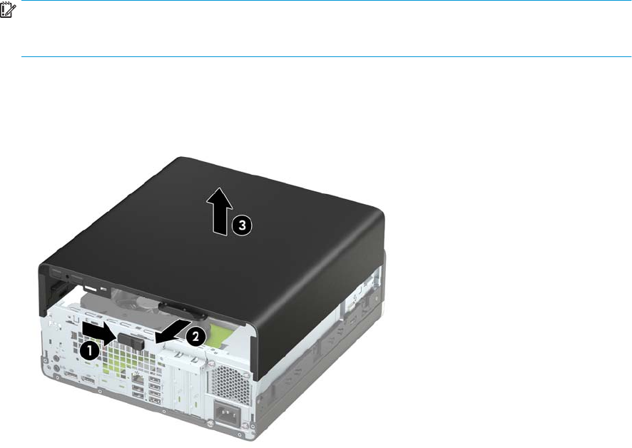 bakåt (2) och lyft sedan bort panelen från datorn (3).
