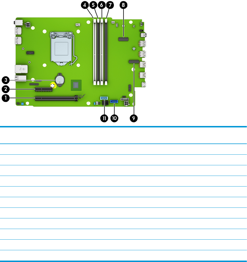 Consulte a seguinte ilustração e a tabela para identicar os conectores da placa do seu sistema.