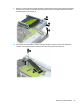 8. Puxe para fora a alavanca de libertação ao lado da parte posterior da unidade de disco rígido (1).