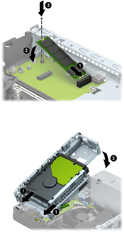 11. Para instalar um cartão SSD M.2, deslize os pinos no cartão para dentro do conector da placa do sistema