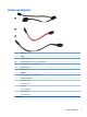 4 Audio-out jack for powered audio devices 9 Power cord connector