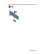 2 컴퓨터에 메모리 모듈 설치 모듈을 설치하기 위한 절차는 컴퓨터 모델에 따라 다릅니다. 해당 컴퓨터 모델에서 설치 준비를 하는데 도움 이 필요한 경우에는, 컴퓨터와 함께 제공된 설명서를 참조하거나 http://www.hp.com/support 페이지로 이동 하여 해당 모델의 설명서를 찾아보십시오. M.2 커넥터가 있는 모델 참고: 시스템 보드에 두 개의 M.2 커넥터가 있는 경우, 잠재적인 전자기 간섭을 방지하려면 메모리 모듈을 두 번째 M.2 커넥터에 설치합니다. 시스템 보드에 모듈을 설치합니다. 1. 시스템 보드에서 지원되는 M.2 커넥터의 위치를 확인합니다. 커넥터에는 SSD라고 표기되어 있습니다. 2. 필요한 경우, 커넥터 근처 구멍에 나사 스탠드오프를 설치합니다. 3. 모듈을 M.2 커넥터에 설치합니다(1). M.