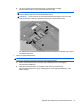 1. Indsæt harddisken i harddiskpladsen (1), og tilslut harddiskkablet til bundkortet igen (2).