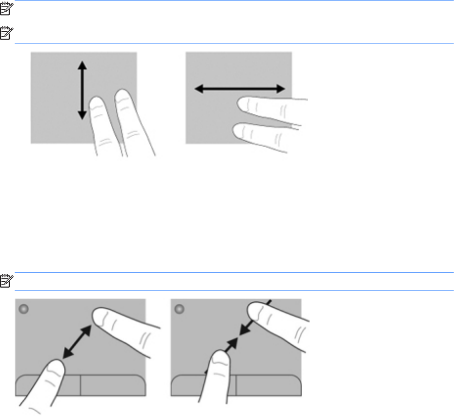 Posouvejte tak, že položíte dva prsty na zařízení TouchPad a potáhnete s nimi přes zařízení