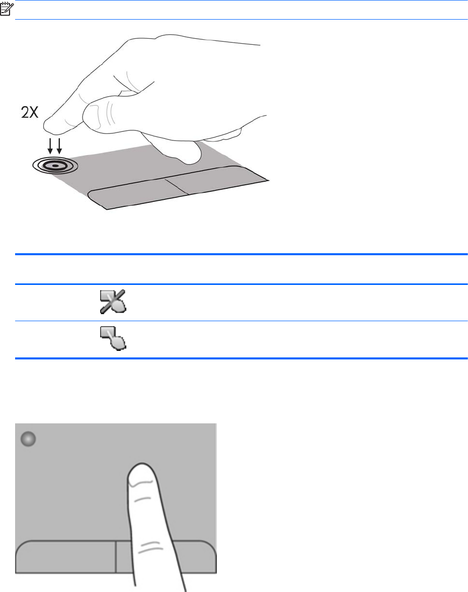 Az érintőtábla be- és kikapcsolásához kétszer koppintsa meg gyorsan az érintőtábla be- és